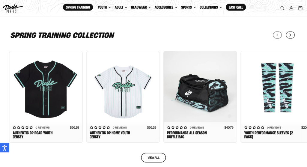 YouTube channel Dude Perfect makes an estimated $500,000 per year from selling merch via their online store. The sports-centered channel has a link to their store in their YouTube bio so viewers can easily find and shop their products. They also have links prompting viewers to “Shop the Dude Perfect store” in the descriptions of all their videos and include mentions of their store in their content too.