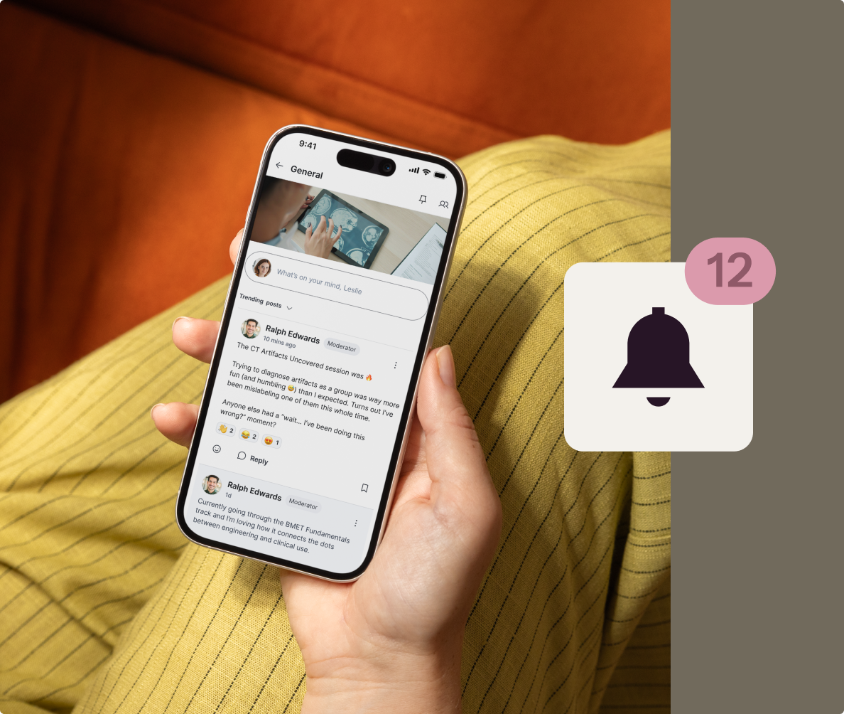 The app is a powerful extension of your learning experience, giving learners more ways to engage, connect, and learn on the go. They can access courses, events, and downloadable content anytime, participate in community spaces and feeds, and post with videos or multiple files.